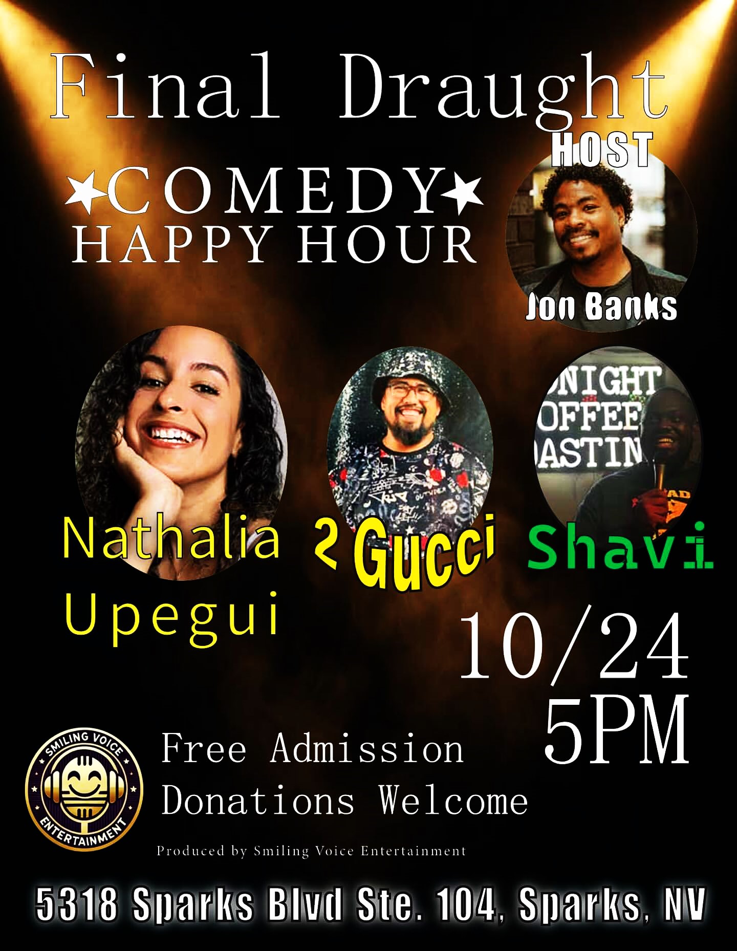 Join us on Thursday, October 24 at 5 PM for an evening full of laughs here at Final Draught in Sparks!