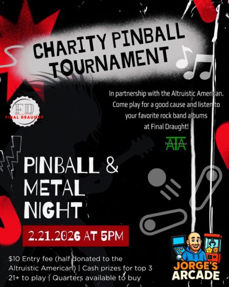 Pinball fans, this one’s for you 🍻 Join us for a Charity Pinball Tournament at Final Draught on February 21, 2026 at 5 P...moreless