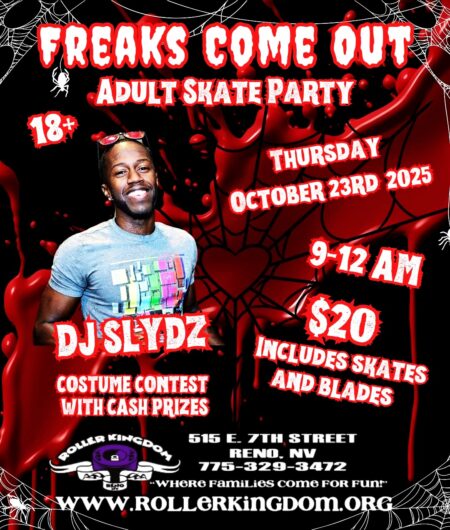 lessmusic is killer 🎶, the costumes are wicked 👻, and the vibes are scarily good.🎧 DJ Slydz will keep you rolling all night!🧟♂️ Costume Contest with CASH prizes 💰 – so bring your creepiest, freakiest, or funniest fits!📅 Thursday, October 23rd, 2025🕘 9 PM – 12 AM💲 $20 (includes skates & blades)📍 Roller Kingdom, Reno, NVTag your spooky squad and let’s haunt the rink together! 🕸️