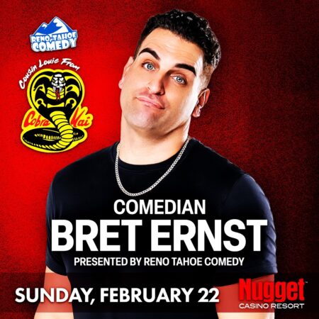 Comedian Bret Ernst (Cobra Kai’s “Cousin Louie”) is bringing his stand-up to the Celebrity Showroom on Sunday, February 22 — presented by Reno-Tahoe Comedy.One night. Big laughs. Don’t wait on tickets.