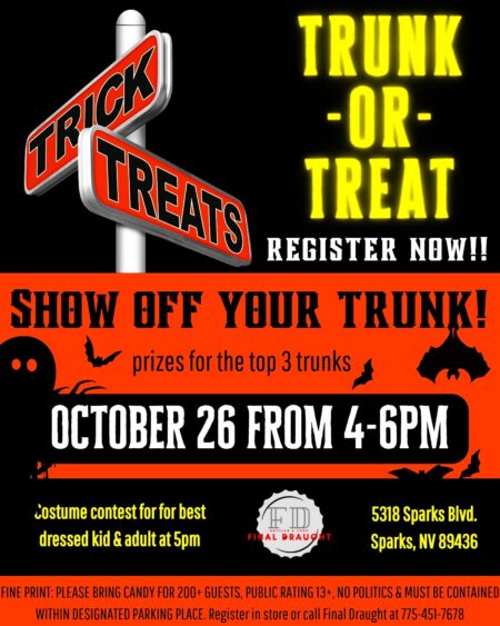 lessxciting Halloween events in Northern Nevada. 🎃 Bring the kids to explore creative trunks, collect candy, and enjoy a night full of festive fun. Want to join the magic? Sign up to host a trunk and show off your decorating skills.✨ At 5 PM, we will host a Costume Contest with prizes for the Best Dressed Kid and Best Dressed Adult. Costumes, candy, and community make this one of the best family-friendly Halloween traditions in Sparks.To host a trunk, sign up in-store or call us at 775-451-7678 👻 Whether you are handing out candy or trick-or-treating, this event is all about fun, community, and Halloween spirit.
