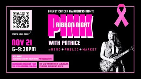 ight with Patrice Luciano, taking place Friday, November 21 from 6:00 to 9:30 p.m.This free, all-ages event will shine spotlight on breast cancer education and prevention, featuring on-site support from the Nevada Cancer Coalition, which will provide valuable resources and information, and Renown Health, offering guests the opportunity to schedule future mammogram appointments during the event. Alongside these community partners, audiences will enjoy an uplifting live performance by country-rock artist Patrice Luciano at Reno Public Market, 299 E. Plumb Lane in Midtown Reno.