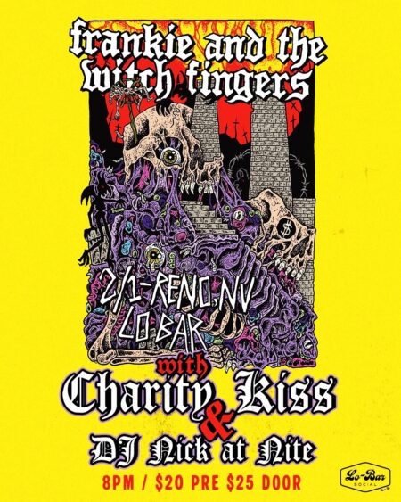 Frankie & The Witch Fingers are making their way back to Reno! Please join them along with local legends Charity Kiss Sunday 2/1 for a show you can't miss! DJ Nick at Nite from F&TWF will be on the ones and twos post show as well. What a banger nite! Ticket link in bio. This will sellout so get yours now!Frankie & The Witch FingersCharity KissSunday 2.1 / 8pm / $20 Pre $25 Door
