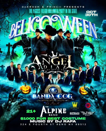 Get ready for “BELICOWEEN” 😈at THE ALPINE RENO📍 on October 30th! featuring Angel Diaz y Su Nueva Era and Banda CCG, music by DJ Rafa. $1000 prize for the best costume, ! Brought to you by OakRoom, El PrinCii, Chapo Sports Bar & @the_funktion_775 . Don’t miss out!TICKETS 🎟️ AVAILABLE VIA EVENTBRITE FIRST 100 TICKETS ONLY $10 EAXH.