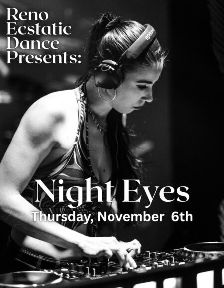 Reno! “Night Eyes is known for her ability to weave sensual and deeply immersive soundscapes. Her sets are a hypnotic fusion of beauty and depth, designed to awaken inner divinity and reconnect listeners to source.Born and raised in Northern California, her sound is a reflection of the diverse sonic and cultural landscapes that have shaped her—rooted in the raw desert energy of Reno and Burning Man, infused with the mystical frequencies of Nevada City, and pulsing with the underground rhythms of the Bay Area.Blending tribal bass, global organic beats, and heavy, body-moving basslines, Night Eyes creates a sound that is both primal and ethereal—music that stirs the hips while opening the heart. Each journey is guided by intuitive flow, transcending genre to follow emotion, rhythm, and spirit wherever they lead.Held in intentional containers, her dance journeys become portals for somatic, emotional, and sensual liberation—an invitation to release, remember, and transform through movement and sound.“