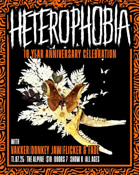 Heterophobia- November 7thVakker| Donkey Jaw | Flicker & FadeAll Ages- Doors at 7pm