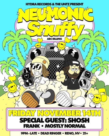 Hydra Records and The Untz are stoked to announce the return of the two most requested acts of be booked and a very special debut who will surely be added to that list after 11/14!Friday, November 14th • 9PM - LATE@deadringer_renoCo-Headline performances by:@neumonic@snuffy.bassSpecial guest:@shosh_music Reno debut🔊Local support from:@mostlynormal_@frankkhunterr and friends 🥲🎟️ Hydra-Records.com via @theticketingco📢 Promotion by Hydra Records & @theuntzfestival🎨 Live painting, vendors and food truck TBA - this is one you’re not going to want to miss.🖼️ Cheekiest artwork by @slippy.world