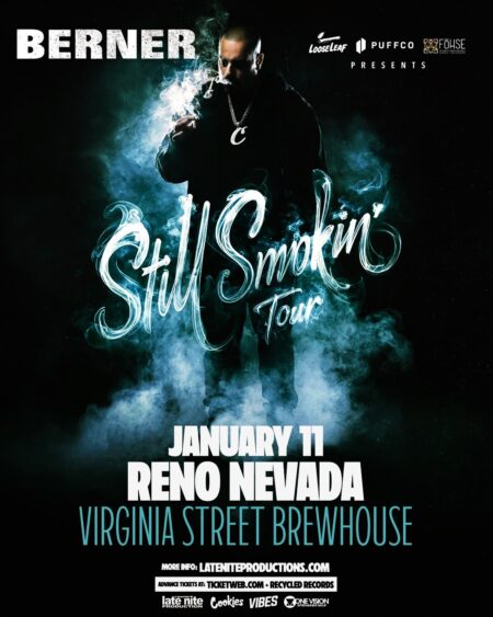 ing of Cannabis” Berner live in concert as he blazes hit way to Reno, Nv on the “Still Smokin Tour”. This is happening Sunday January 11, 2026 at the Virginia Street Brewhouse and all ages are welcome. Advance tickets are available at Ticketweb.com and Recycled Records. Powered by Cookies, Vibes, One Vision Entertainment and Late-Nite Productions!