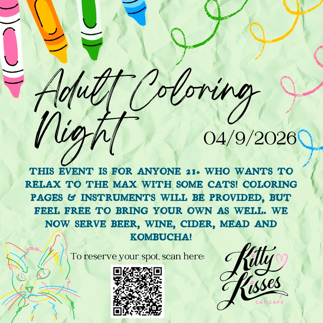 Relax to the max! Color and enjoy an adult beverage, surrounded by catsTickets required, spaces are limited