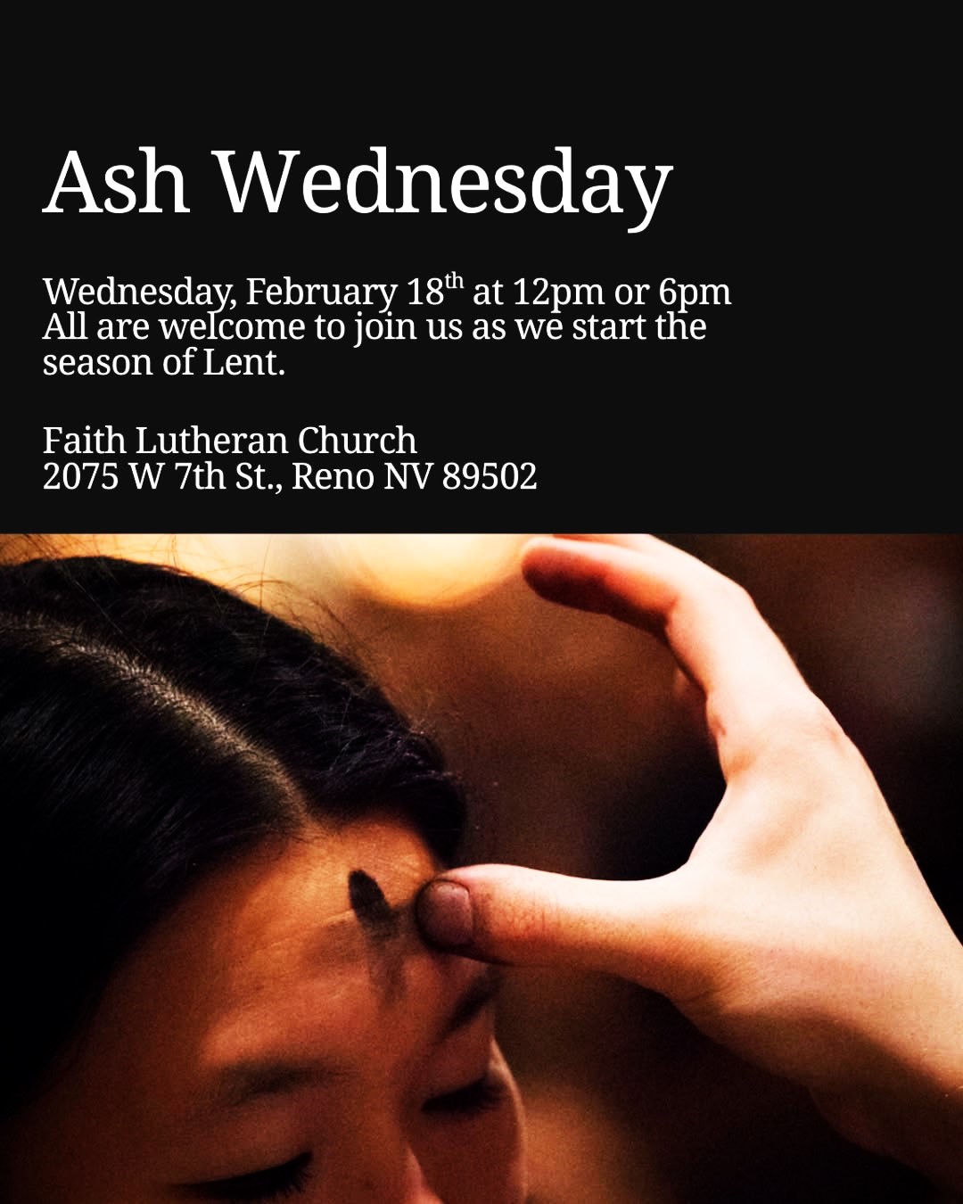 Mark your calendars for our Ash Wednesday services this year on February 18th at 12pm or 6pm. Both services will take place inside the sanctuary.