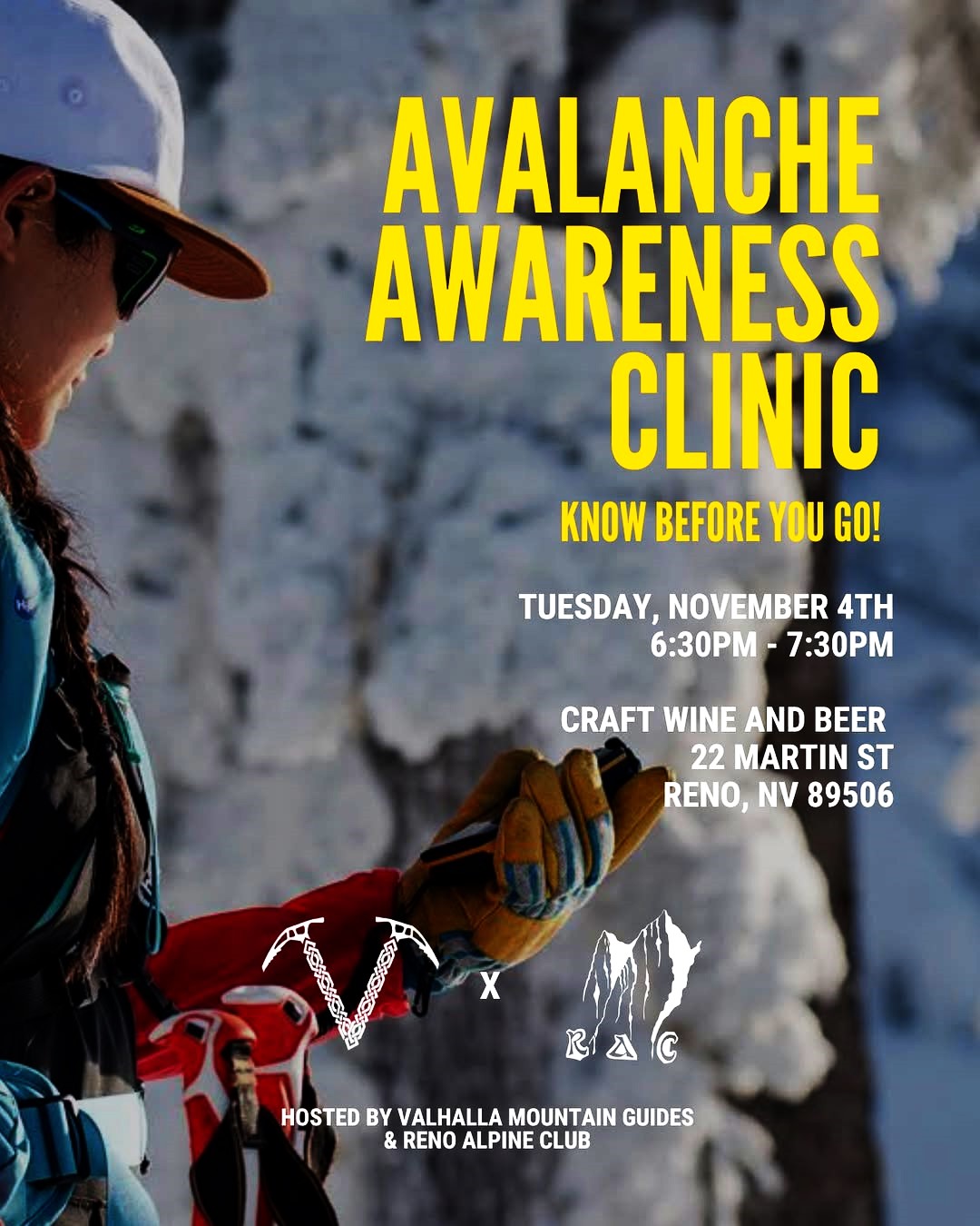 We’re co-hosting our first FREE avalanche awareness talk of the season with @renoalpineclub next Tuesday, November 4th at 6:30 at @craftreno. This will be great as a refresher for those experienced in the backcountry and for anyone new to it! We’re getting stoked for ski season!