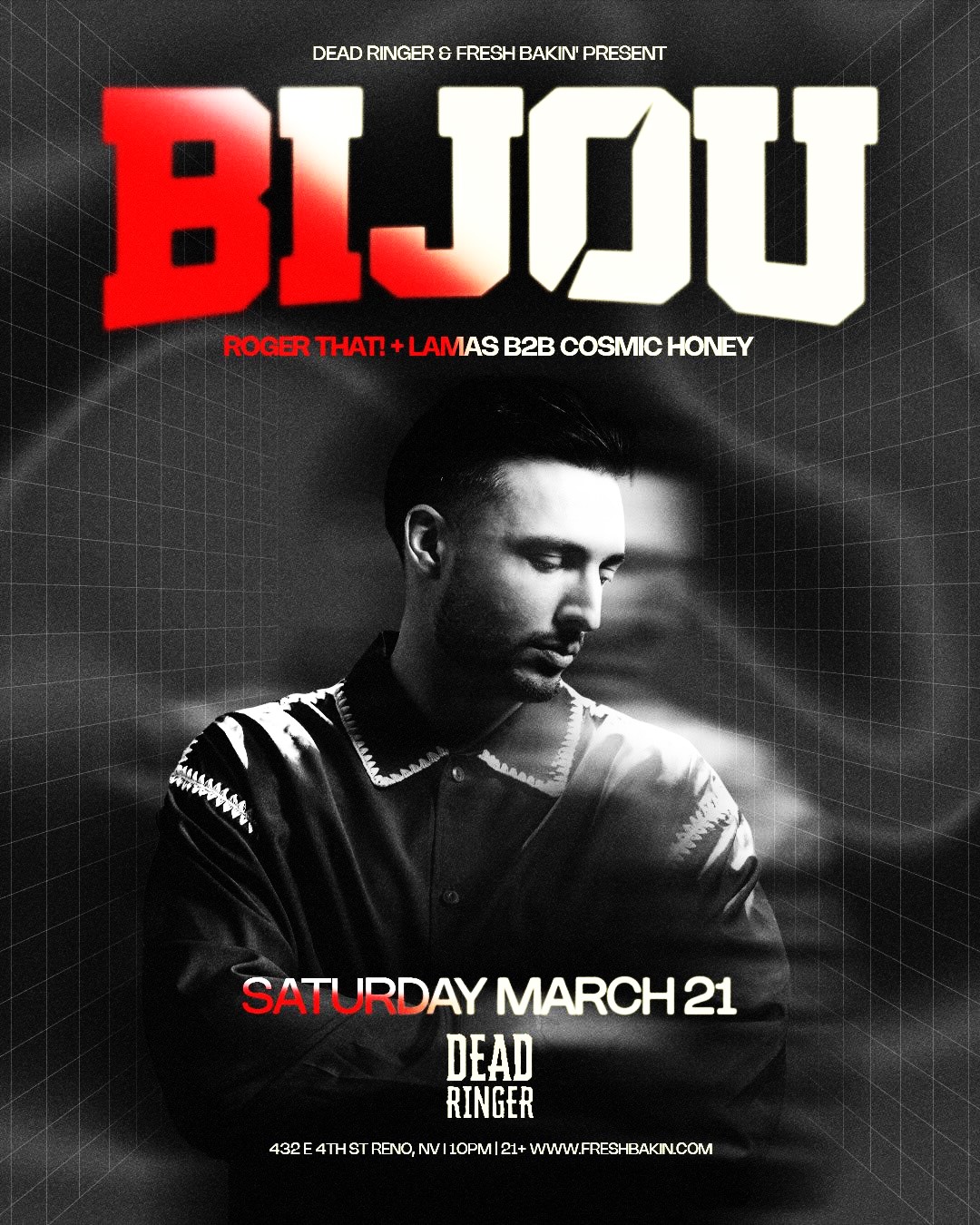 Small change, same party: @djbijou’s show has moved to 3/21/26 @deadringer_reno