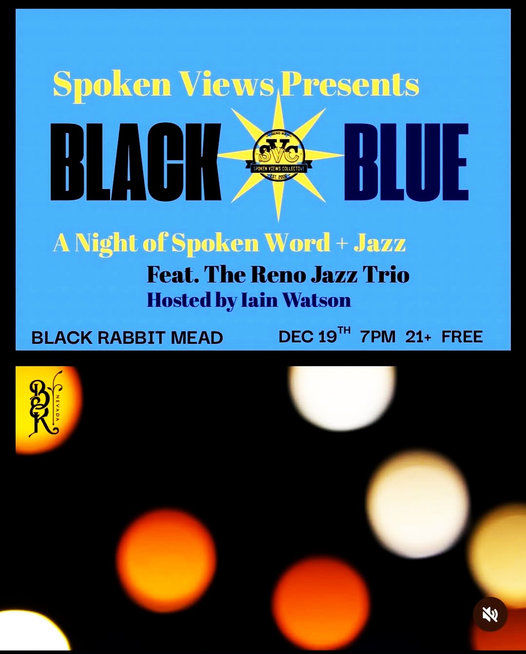From: @spoken_views_reno We are bringing back our beloved Black & Blue Spoken Word & Jazz event on December 19th. 7pm @blackrabbitreno! We have The Reno Jazz Trio providing the improvised soundscape for the poets.