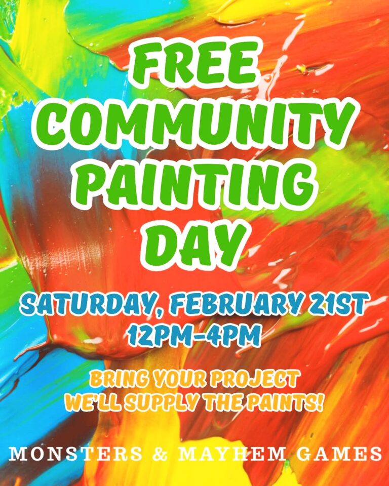 FREE Community Paint Day this Saturday, 2/21! 🎨 Grab your minis, terrain, armies, or that half-finished project you’ve b...
