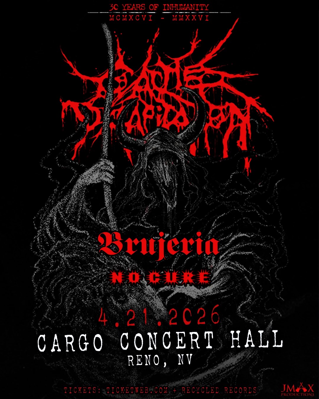 JMAX and Cargo Concert Hall present Cattle Decapitation, with special guests Brujeria and No Cure! JMAX and Cargo Concert Hall present Cattle Decapitation, with special guests Brujeria and No Cure! Live at Cargo Concert Hall in Reno, Nevada All Ages Event | Full Bar for 21+ (Must have a valid photo ID) Doors 6 PM | Show 7 PM