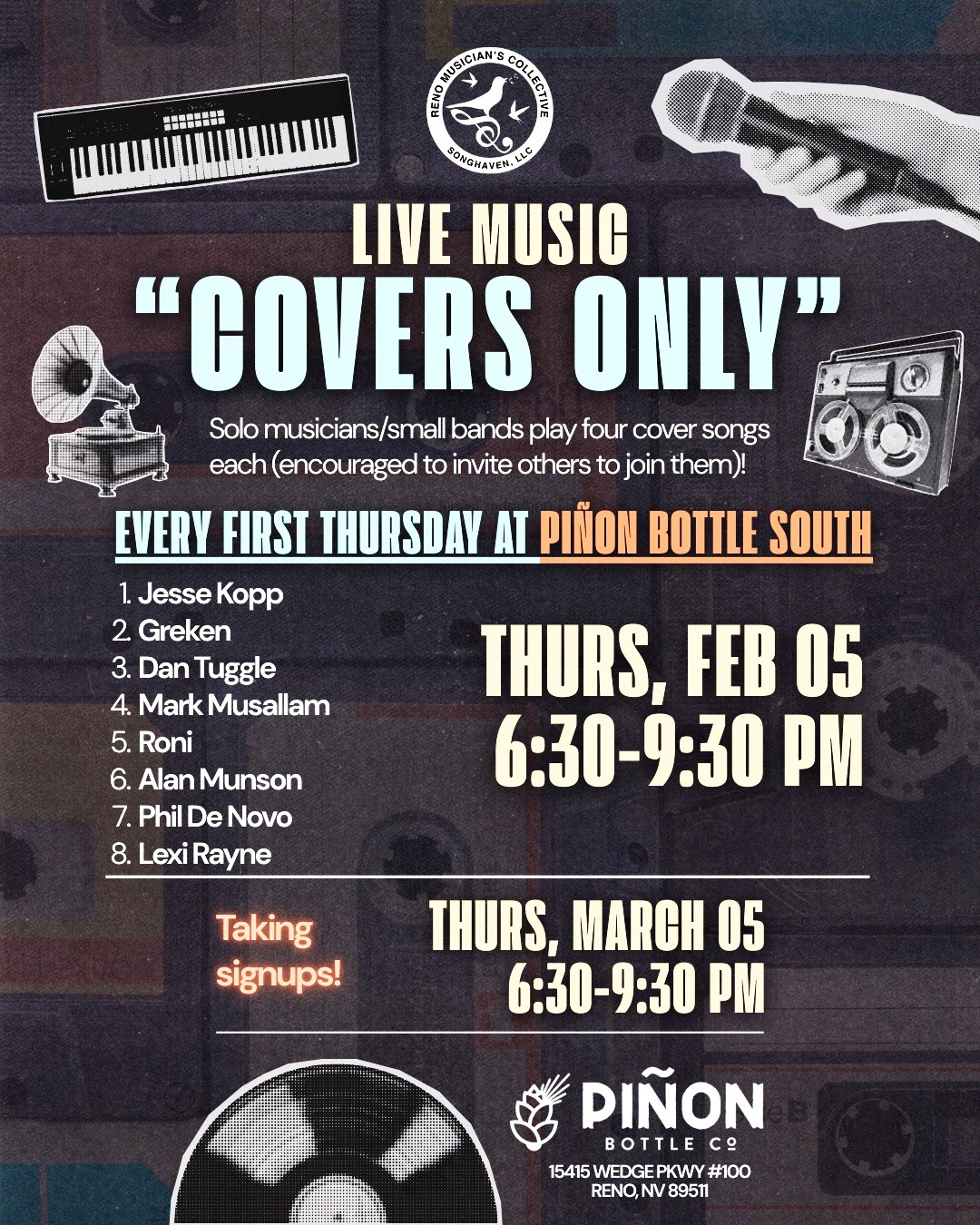 Next week we have another fun night of cover songs for you at Piñon Bottle South!