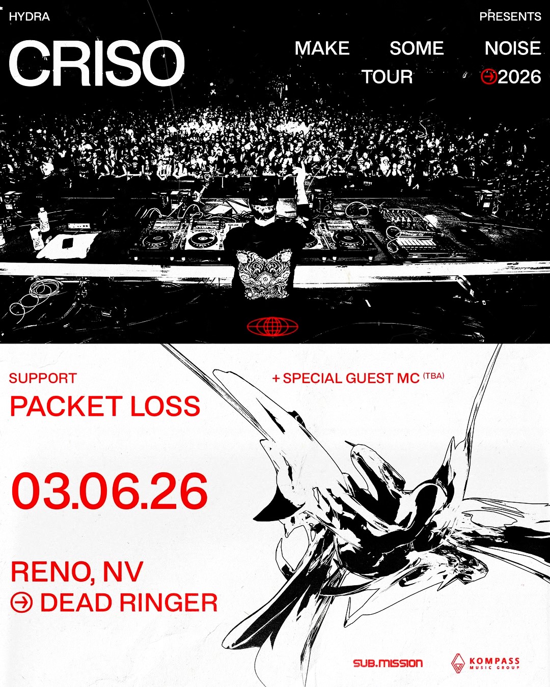 Hydra Records presents Criso’s Make Some Noise Tour! Riding the momentum of an incredibly successful launch of the “Make Some Noise” EP with the vaunted DEEP MEDi label, Criso is taking his highly curated, technically crafted live show on the road across North America in 2026
