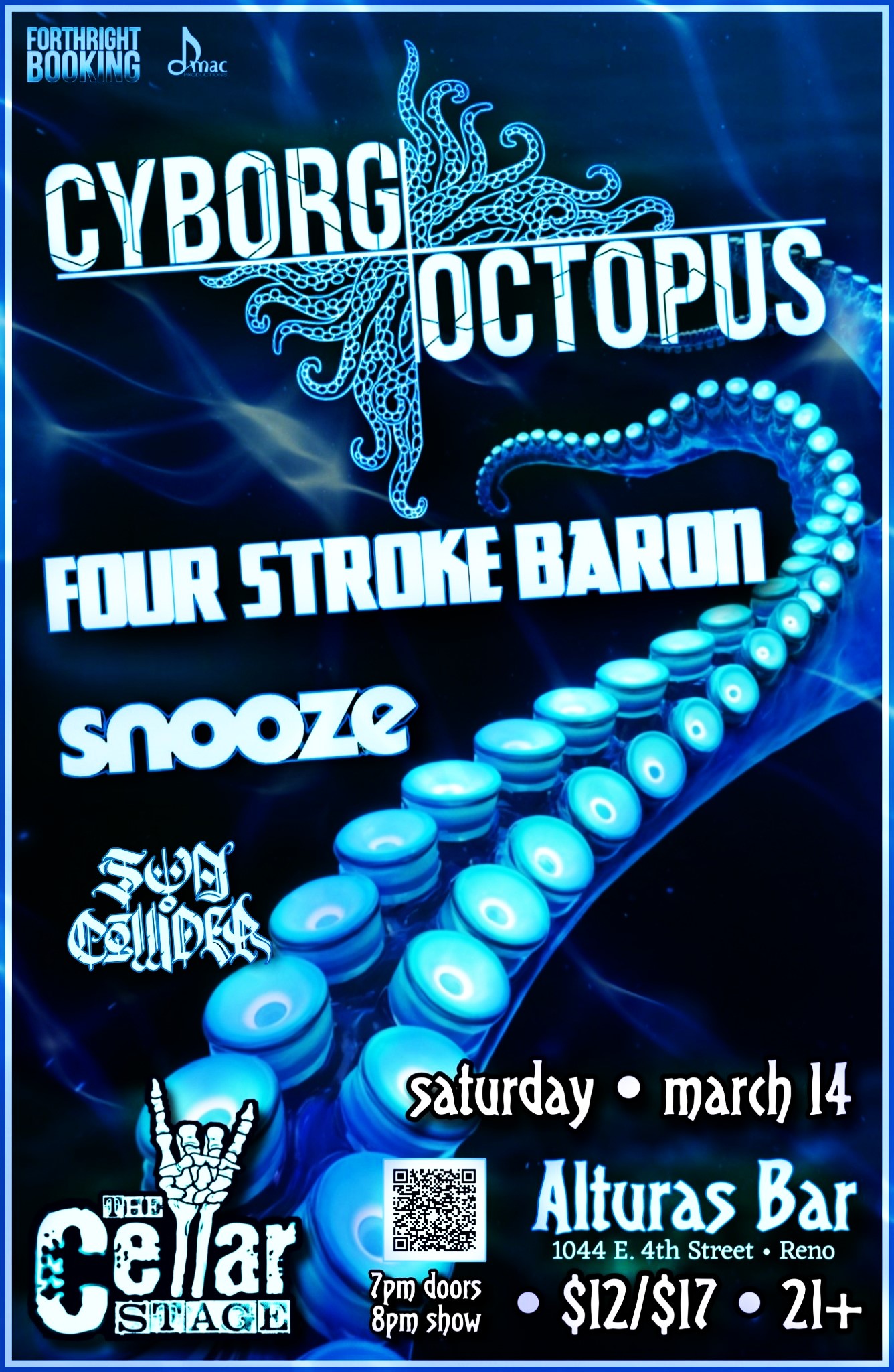 Four Stroke Baron is an alternative metal band that combines heavy riffs with synth-driven, futuristic atmospheres. Their style balances aggression and melody while exploring dark, sci-fi–inspired concepts.