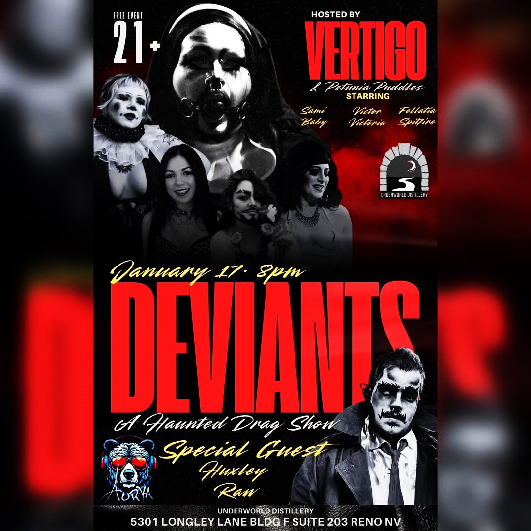 This sinful drag and burlesque experience returns January 17th at 8pm, pushing the fantasy further into the deliciously dangerous. Expect decadent visuals, raw sensuality, and unapologetic performances that blur the line between pleasure and peril.