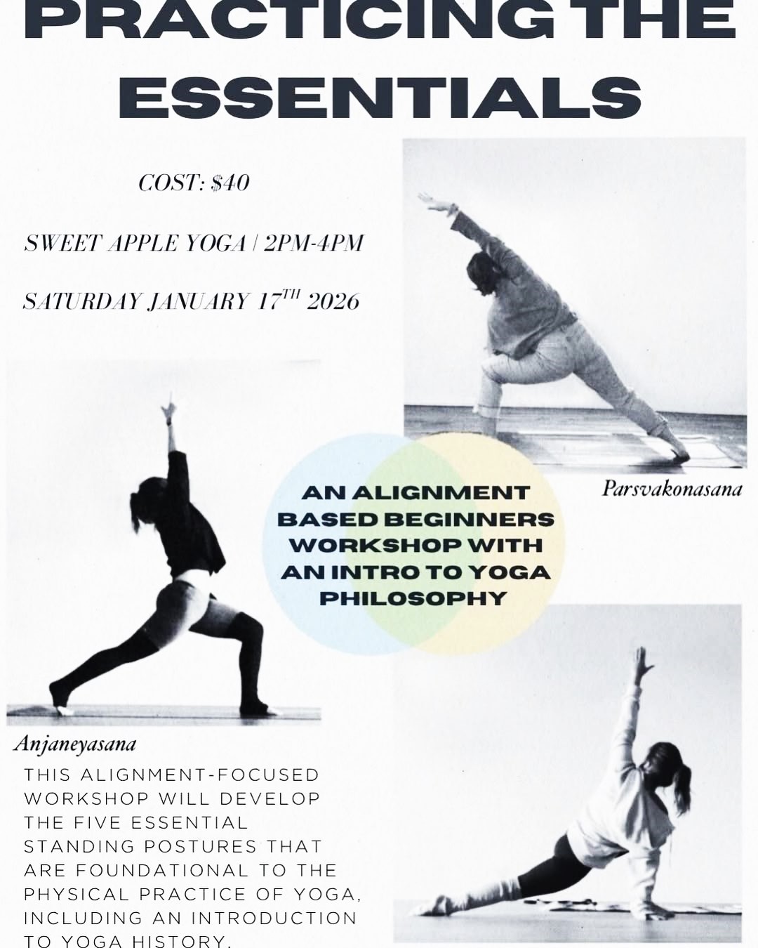 Hour Hatha based workshop that focuses on the essential postures of yoga, with specific attention to alignment and body awareness. Beginners will learn the building blocks of classic poses that appear across Hatha, Vinyasa, and Power Yoga, while developing strength, flexibility, and an understanding of their own unique alignment.