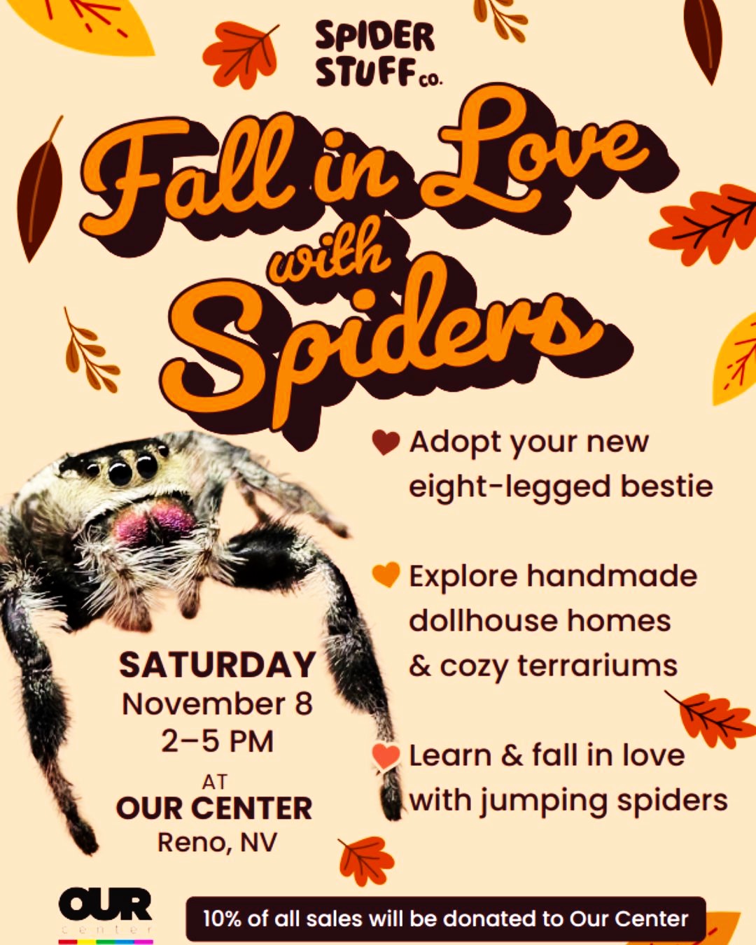November 8th, come fall in love with spiders during Spider Stuff Co.’s spider event! Adopt a new eight-legged friend, explore handmade homes and terrariums, learn about and fall in love with these adorable jumping critters! π·