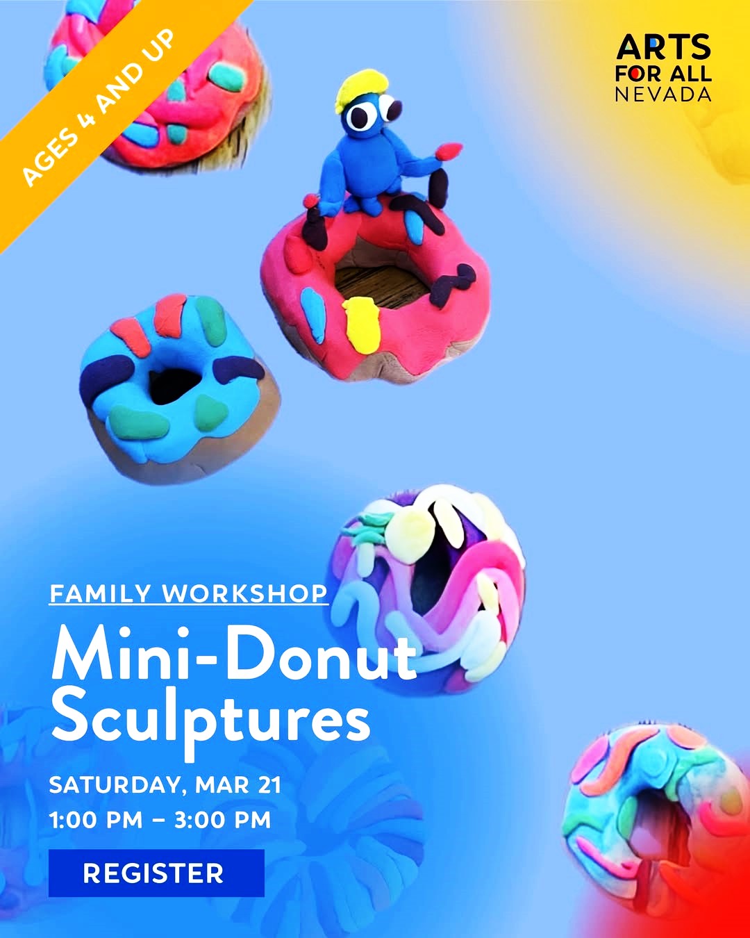 In this family workshop, you and your little one will learn color mixing as you sculpt an adorable and delicious looking miniature doughnut. Working with air-dry-clay is a great sensory art activity, and at the end, you will have the option of turning your miniature sculptures into earrings or necklaces!