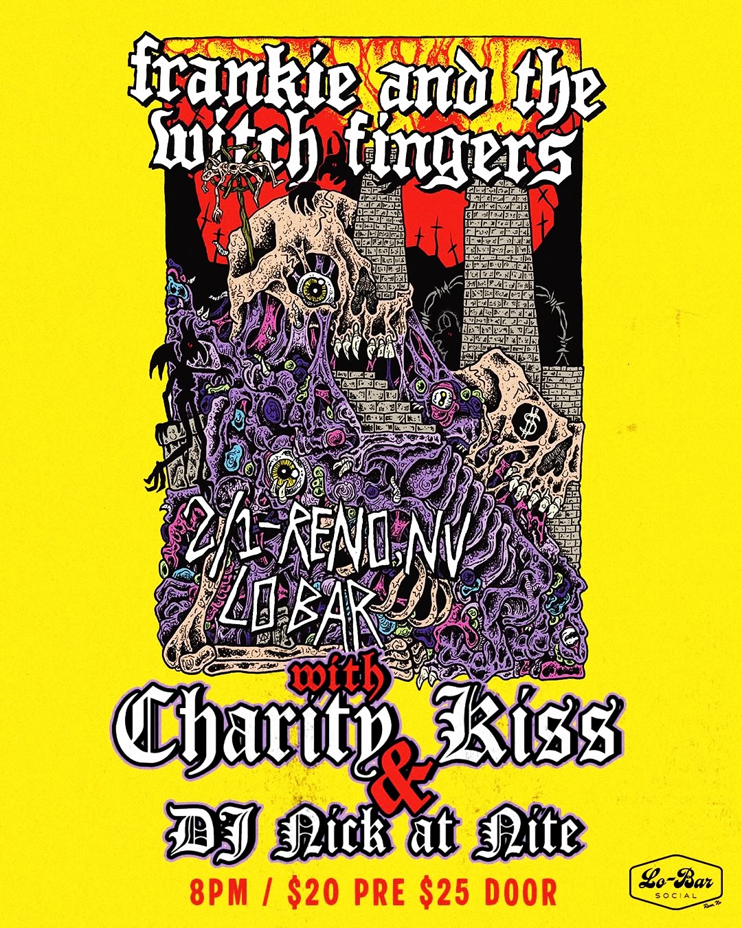 Frankie & The Witch Fingers are making their way back to Reno! Please join them along with local legends Charity Kiss Sunday 2/1 for a show you can’t miss! DJ Nick at Nite from F&TWF will be on the ones and twos post show as well. What a banger nite! Ticket link in bio. This will sellout so get yours now!