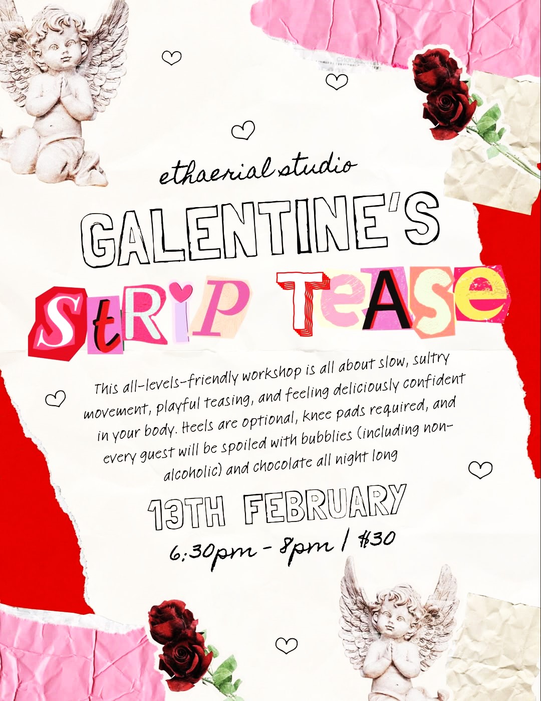 💝 THIS GALENTINES DAY 💝 trade dinner plans for something WAY more fun 😏 Join us for our Galentine’s Strip Tease Workshop!!