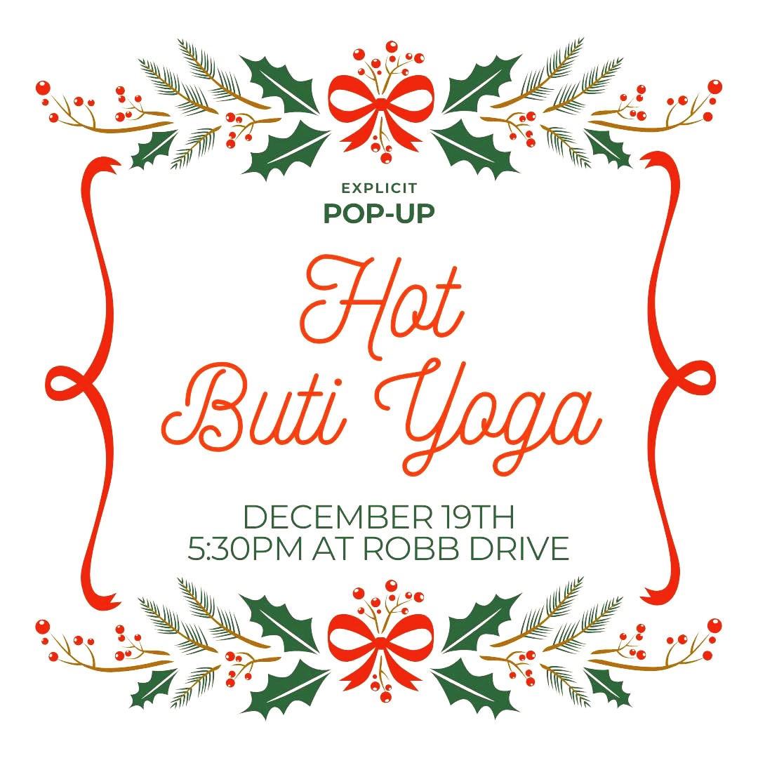 Join us Friday, December 19th at 5:30pm at Robb Drive for our Pop-Up Explicit Hot Buti Yoga, a spicy, high-energy flow that blends strength, cardio, and dance.