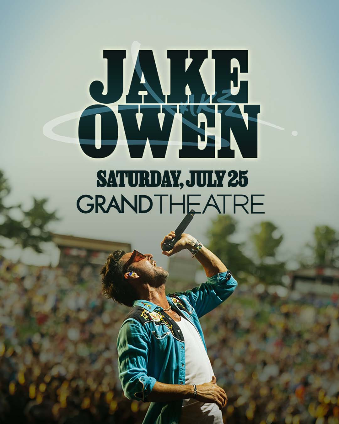 Jake Owen is a platinum-selling country music star known for laid-back, beach-inspired hits like “Barefoot Blue Jean Night” and “American Country Love Song.” He has brought his high-energy performances to venues such as the Grand Theater, where fans experience his signature blend of country charm and feel-good anthems live.