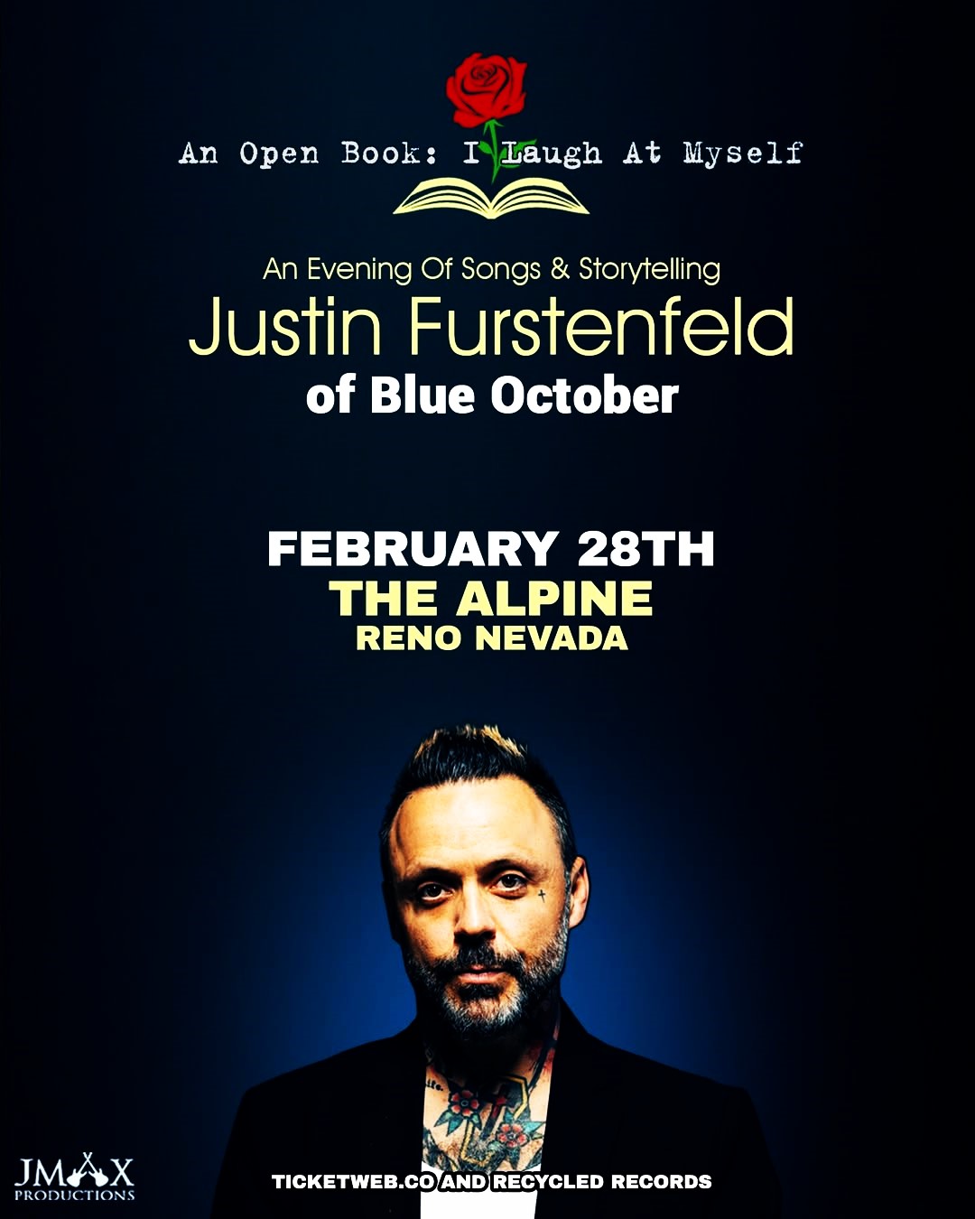 💥 Show Announcement 💥 Justin Furstenfeld of Blue October 🌹🌹🌹 live February 28th at The Alpine in Reno Nevada 🌹🌹🌹Tickets available at Ticketweb.com and Recycled Records