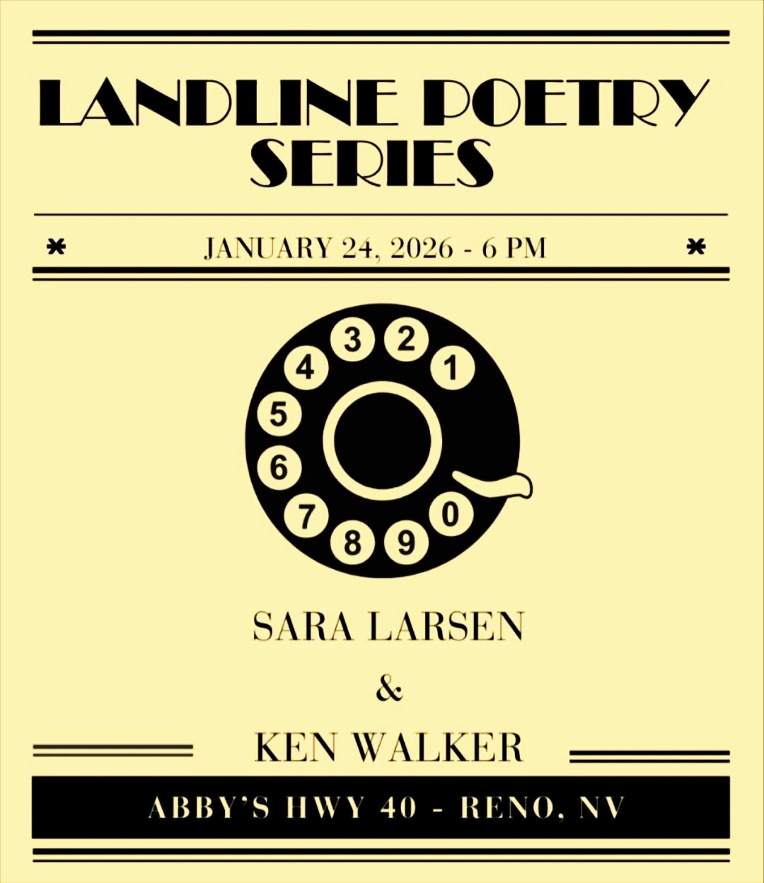 Landline poetry returns to Abby’s January 24th a 6pm.