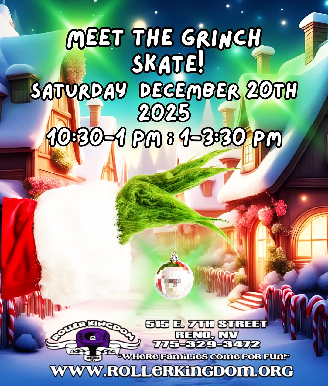 He’s mean, he’s green, and he’s rolling into Roller Kingdom for a holiday skate you don’t want to miss! 🛼✨