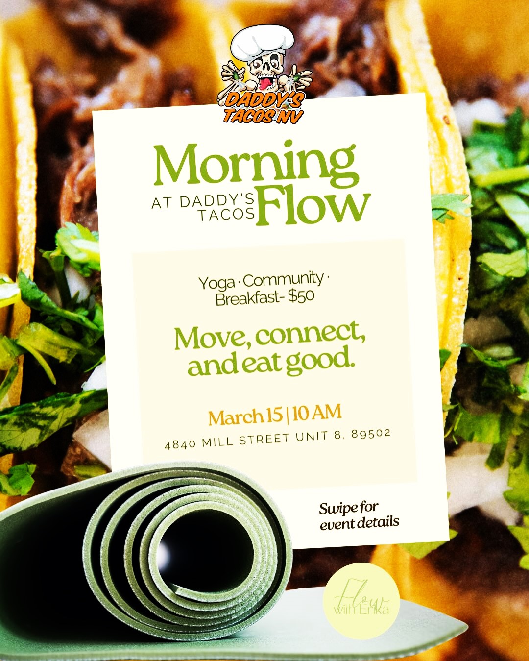 📍 Come join us for a rejuvenating morning of yoga with @erikayoga at @daddystacosnv on March 15, 2026 at 10:00 AM.