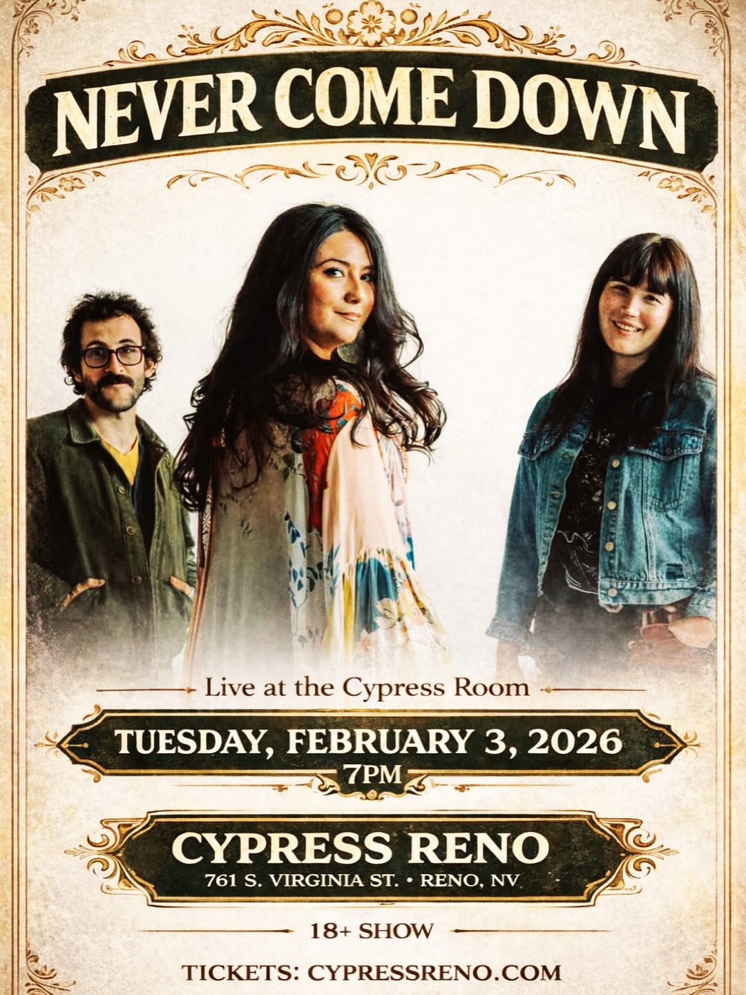 We are super excited to welcome back @nevercomedownband back to the stage @cypress.reno 🔊 Feb. 3