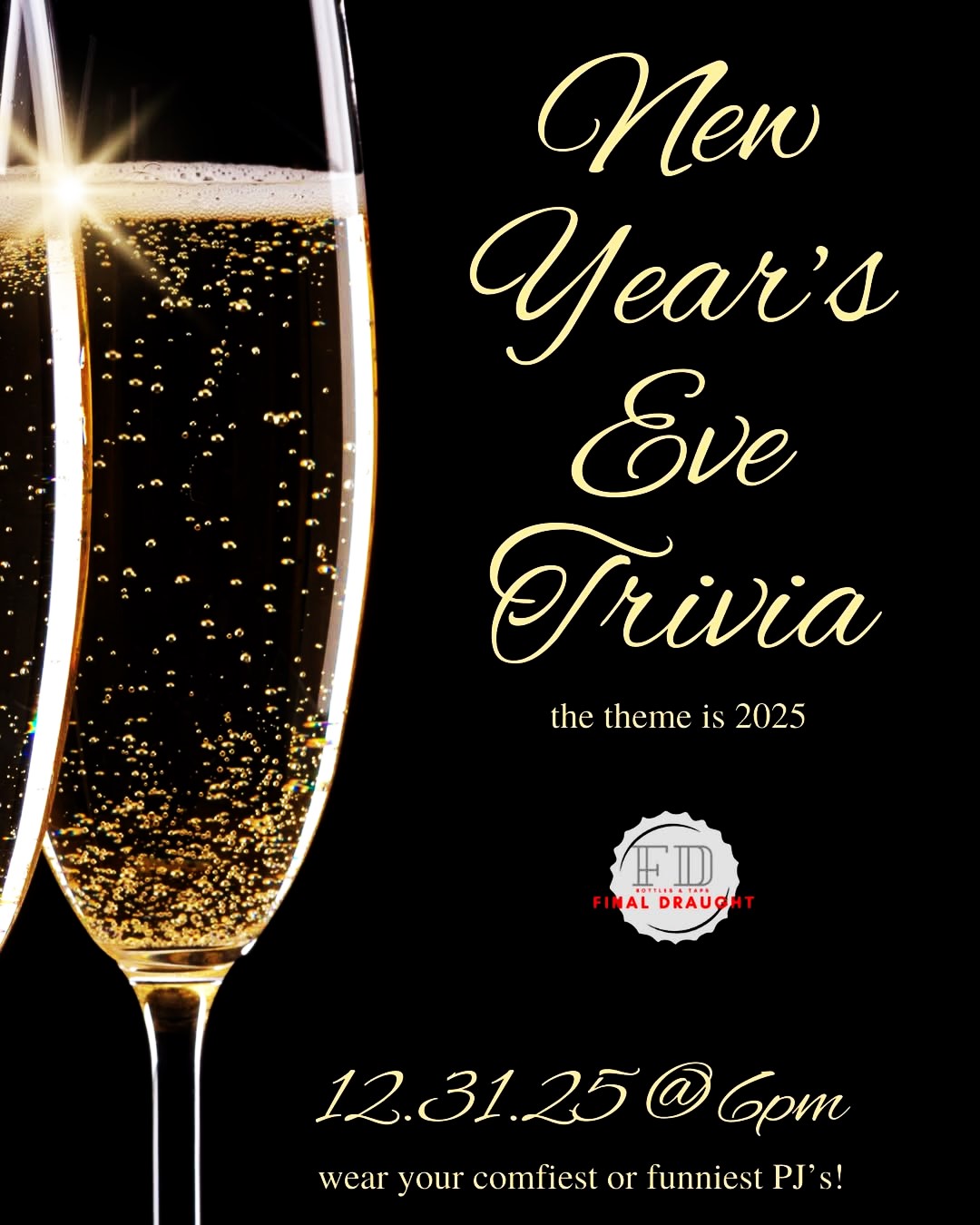 Bring your crew, test your knowledge from the year gone by, and enjoy a fun and relaxed way to kick off your New Year’s Eve plans. 🥂 Wear your comfiest or funniest pajamas!