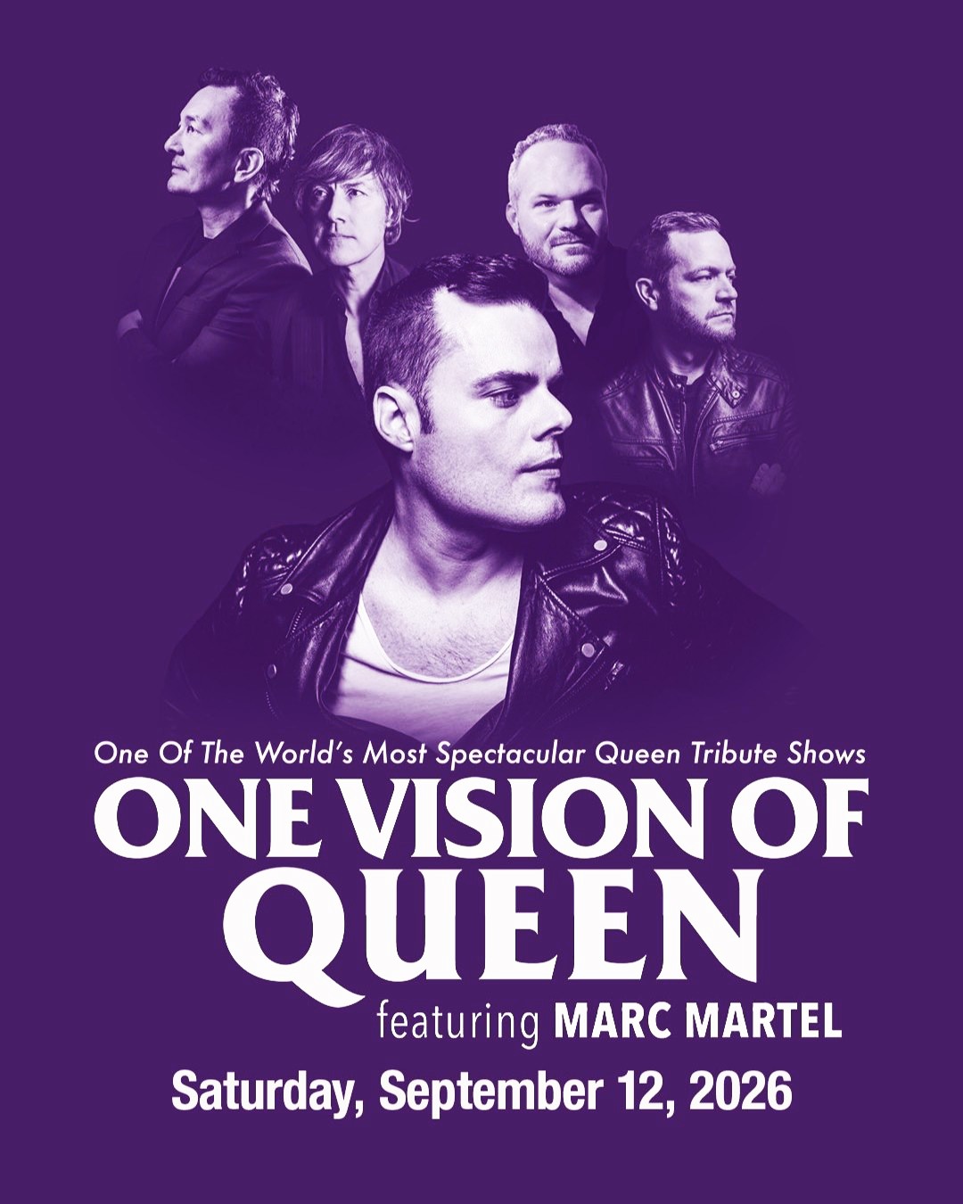 One Vision of Queen feat. MARC MARTEL is a highly anticipated tribute band featuring Marc Martel, known for his stunning vocal performance of Freddie Mercury’s voice. At its core, the riveting show focuses on the extremely diverse body of the band’s greatest hits, from the grandiose “Bohemian Rhapsody” to the adrenaline-pumping “We Will Rock You,” the euphoric “We Are The Champions,” the funky “Another One Bites The Dust,” the stadium-shaking David Bowie collaboration “Under Pressure,” the soulful “Somebody To Love” and the swinging “Crazy Little Thing Called Love” (to name but a few from the steroid-stacked set list). Martel’s enthusiasm and stage presence make for an enjoyable night of non-stop entertainment.