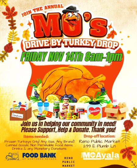 lessWe’re Back, MO’s 9th Annual Turkey Drive!Let me start by saying, Thank You!!! I couldn’t do any of this without the help of my family, friends, folks, and entire community! Gracias!!! Thank you to the entire staff inside at Reno Public Market for the partnership, love, and support! Join us for the 9th annual “Mo’s Drive By Turkey Drop” at @renopublicmarket from 8am-1pm to help the less fortunate kids & families here in the Reno/Sparks area and all across Northern Nevada. We’re looking for Donations of Frozen Turkey’s (only), canned goods, non perishable items, Drinks, and any size monetary contributions that go directly to @foodbanknn as they help deliver these essentials to the most affected areas and families in the area. Just in time for Thanksgiving and Christmas, you can make help and make your contribution on Friday Nov 13th 8am to 1pm right in front of the main entrance of #RPM at 299 East Plumb Ln. ➡️ djmoforadio@gmail.com #help #donate #thankyou #foodbank #mofo #renopublicmarket #thanksgiving #christmas #food #renonevada #cityofreno #renotahoe