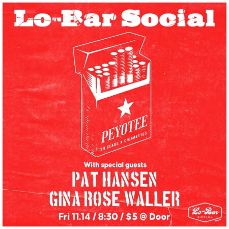 ¡¡¡ New Show Alert !!!PeyoteePat HansenGina Rose WallerFri 11.14 / 830pm$5 @ Door