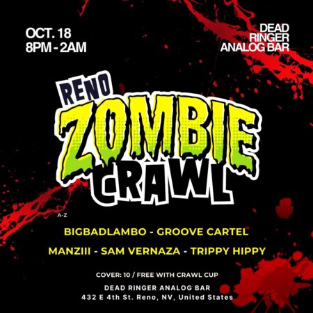 lessZombie Crawl 2025Oct. 188pm - 2amSound Selectors:@ohmylambo@groovecartelofficial@manziii.music@samvernaza@trippy.hippy69Promotion @crawl_renoAbout Zombie Crawl:For over 17 years the Reno Zombie Crawl has carved out a reputation as WHERE THE DEAD MEET! Don't miss THE Halloween season mega-bash: =💰 Save with $4 🍺Beers & $4 🍹Cocktails at every location!🧟♀️ 40+ Different Venues in Two Districts!🧟 Over 150 Specials on food and drinks!🧟♂️ 20,000 Zombies!🎟️ No Cover with Crawl Cup!⏰ Reno has NO Last Call!🏨 Hotel Discounts exclusive to crawlers! =🏆 USA Today listed the Reno Zombie Crawl as one of the 10 Best Costumed Halloween events in the US🏆 Redbook named it the best way to celebrate Halloween in Nevada!🎟️🎟️🎟️ GET CRAWL CUPS 🎟️🎟️🎟️IF WE DON'T SELL OUT, we'll have cups for sale at pickup but the best way to save money and make sure you don't miss out is to pre-order online!PICKUP & SALES ON CRAWL NIGHT:2-9pm Main Start Location: Circus Circus🍺🍺🍺 40+ PARTICIPATING BARS & SPECIALS 🍺🍺🍺21 & OVER - Please drink responsibly🎉 WE MAKE YOUR BEST NIGHT OUT SUPER EASY1. BUY A CUP2. DRESS UP (optional bun fun!)3. PARTY