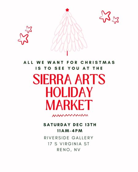 lessOur Sierra Arts Holiday Market has a NEW VENUE + UPDATED TIME ✨📍 Now at the Riverside Gallery (17 S. Virginia St.)⏰ New time: 11AM–4PM📅 Saturday, Dec 13Join us for a festive, art-filled day featuring handmade goods, artwork, jewelry, ceramics, prints, and unique gifts from amazing local artists. 🎁✨Come shop small, support local creatives, and soak in the holiday spirit in our cozy downtown gallery.See you at the new location! 🎨💛