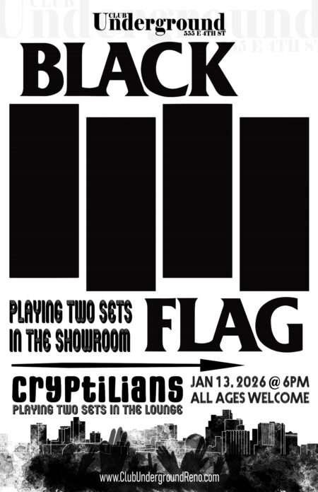 BLACK FLAGperforming TWO SETSin The Showroomwith CRYPTILIANSperforming TWO SETSin The Lounge