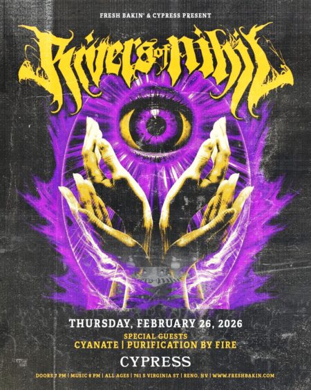 If you’ve been waiting for a metal night… this is it 🔥🤘Rivers of Nihil is coming to @cypressreno Feb 26 w/ Cyanate and Purification By Fire! It’s about to get loud Reno.