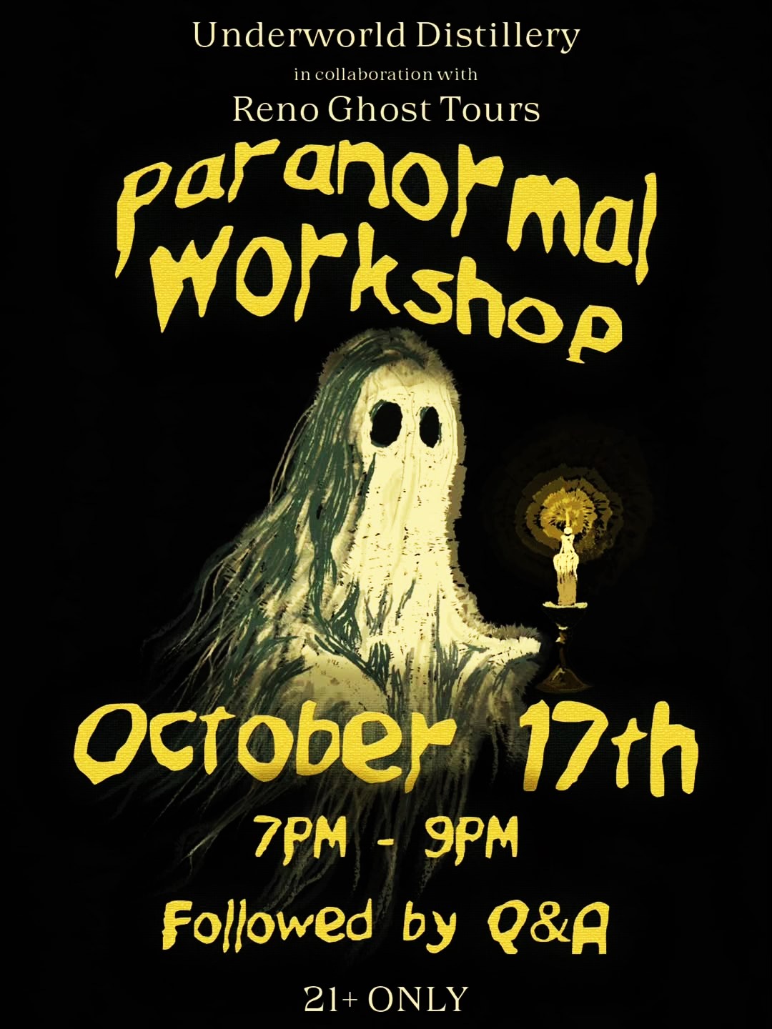 Step into the unknown with us on Friday, October 17th from 7–9 PM as we welcome Reno Ghost Tours for a chilling Paranormal Workshop. Learn about ghost hunting tools, techniques, and the history behind local hauntings, then stick around for a Q&A session where you can ask all your burning questions about the supernatural. We always love when Erin, Nik, and Salem join us; you won’t want to miss this!