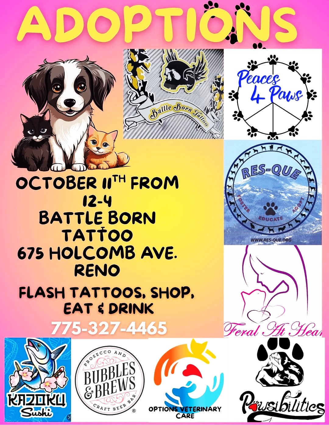#BattleBornTattoo #PetAdoption #FlashTattoos #Fundraiser #AdoptDontShop #RenoEvents