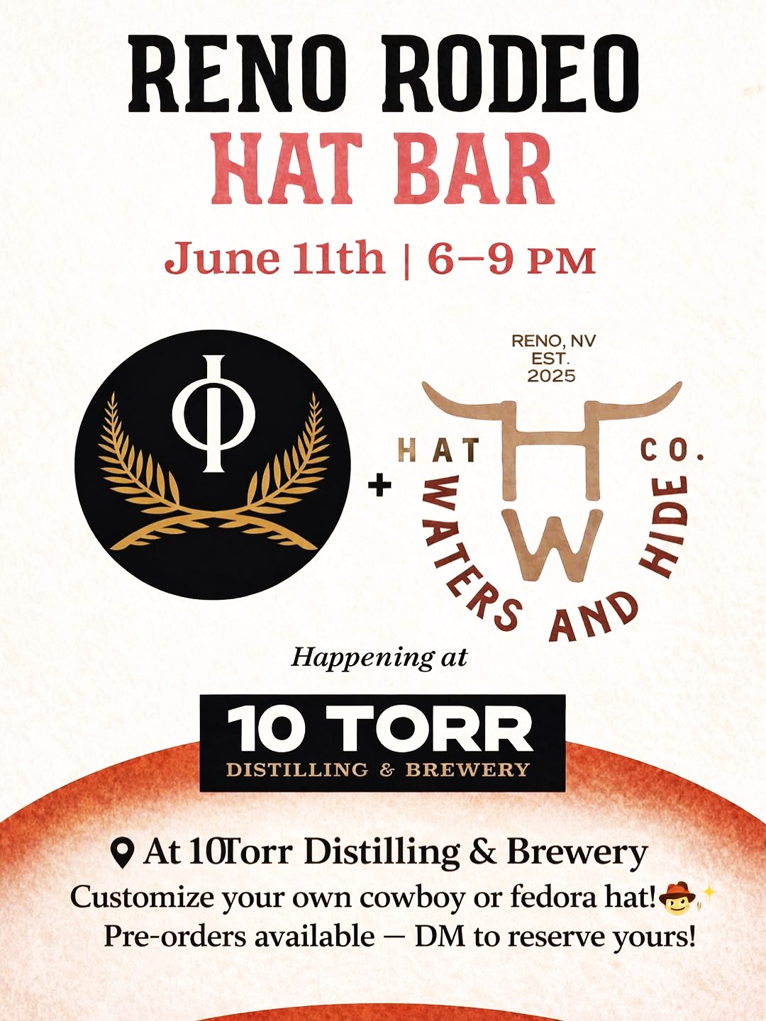Join me June 11th at 10Torr from 6–9 PM for a custom hat experience! ✨ @10torr.reno