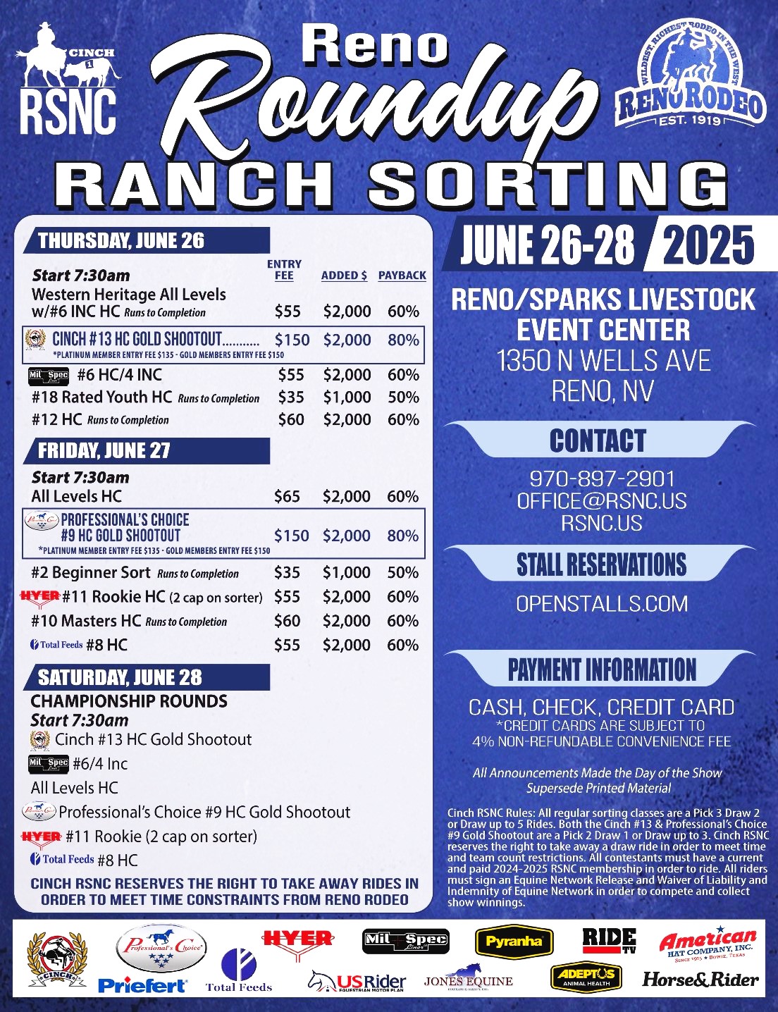 Saddle up for the Reno Roundup Ranch Sorting! 3 days of non-stop action you don’t want to miss!! Reno, NV June 26–28, 2025