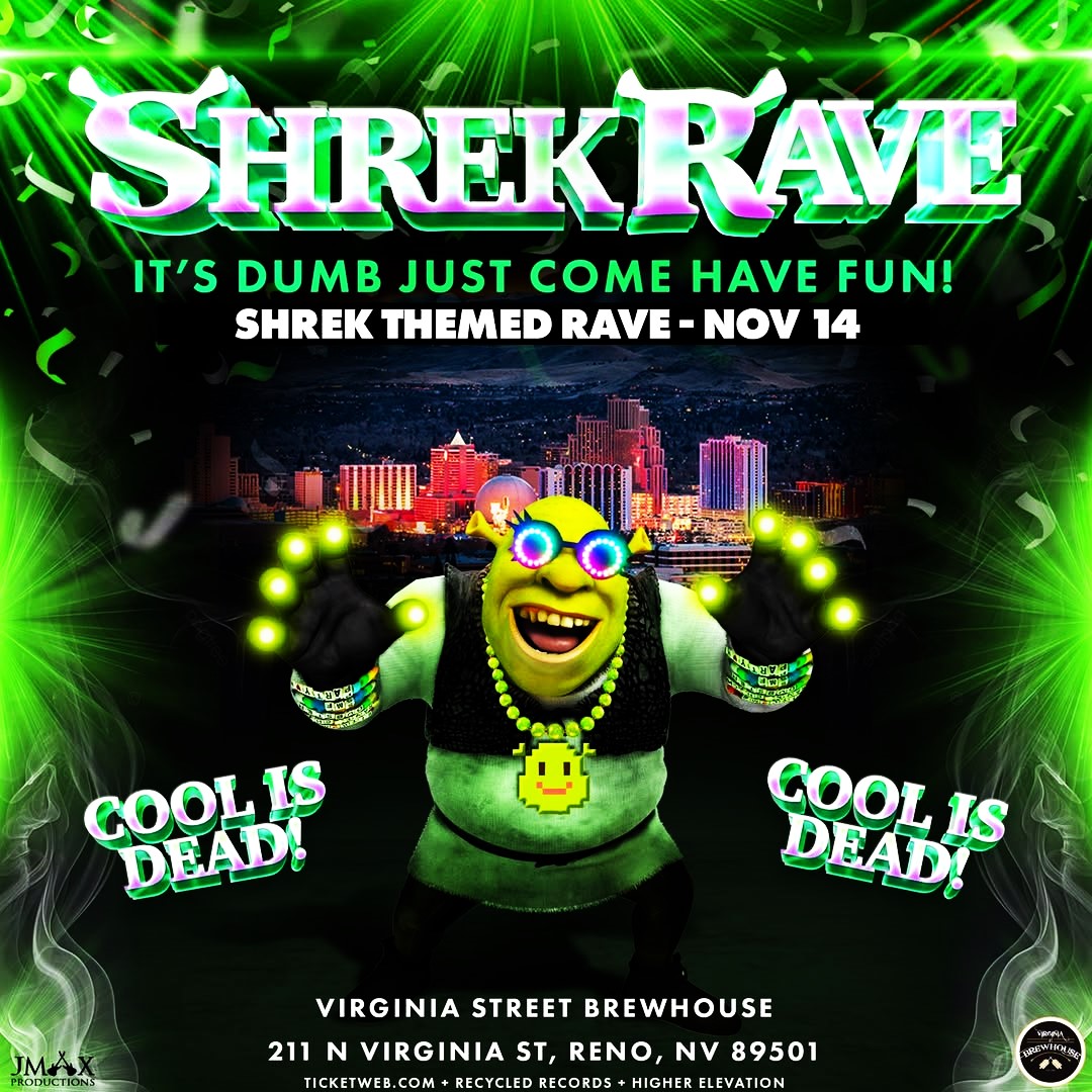 Get ready to swamp-ify your Friday night, Shrek Rave is back and greener than ever, storming the Virginia Street Brewhouse on November 14, 2025, starting at 9:00 PM!