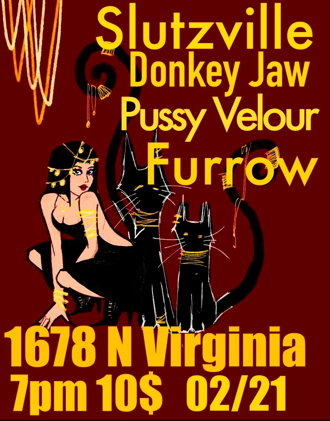 COME SEE @donkeyjawreno, @slutzvilleofficial, @pxssyvelour, @furrow_reno FEB 21st. COME OUT AND SUPPORT BANDS THAT HAVE BEEN SUPPORTING THE RENO MUSIC SCENE.