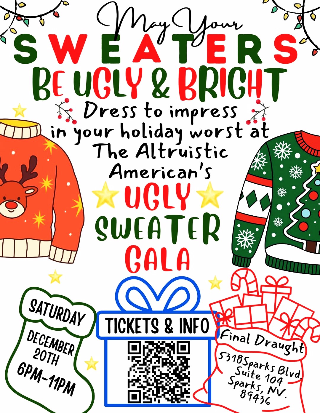 Get ready to deck yourself out in your holiday worst because The Altruistic American’s Ugly Sweater Gala is coming to us here Final Draught!